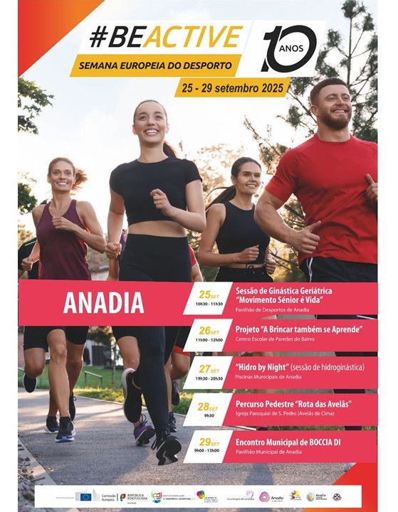 O Município de Anadia vai associar-se à iniciativa da “Semana Europeia do Desporto”, que decorre entre 25 e 29 de setembro, promovendo um conjunto de atividades desportivas dirigidas à população. Pretende-se com esta iniciativa criar hábitos de vida saudável e promover o desporto e a atividade física em estabelecimentos de ensino e espaços ao ar livre.
