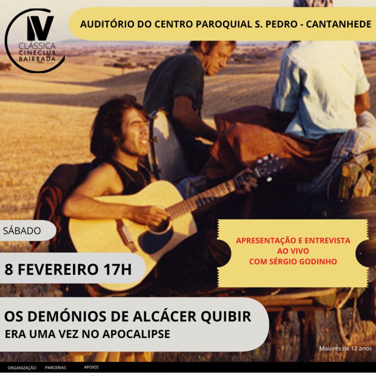 Será visualizada a longa-metragem “Os Demónios de Alcácer Quibir” (1976) realizada por uma das figuras mais importantes do chamado Cinema Novo Português, José Fonseca e Costa, com desempenhos nos principais papéis de António Beringela, Ana Zanatti, Sérgio Godinho, Luís Barradas e Sérgio Godinho que compôs também várias canções para a banda sonora. A história do filme gira à volta de um grupo de teatro ambulante que são associados pela polícia a uma greve de operários agrícolas no Alentejo, com a ação a decorrer no espaço aberto e agreste da charneca. Com a conivência de Lianor, a trupe penetra no palácio de D. Gonçalo, um velho aristocrata que vive obcecado por visões de grandes feitos passados, num universo de fantasmas…